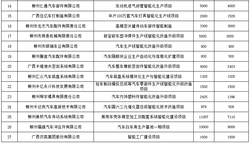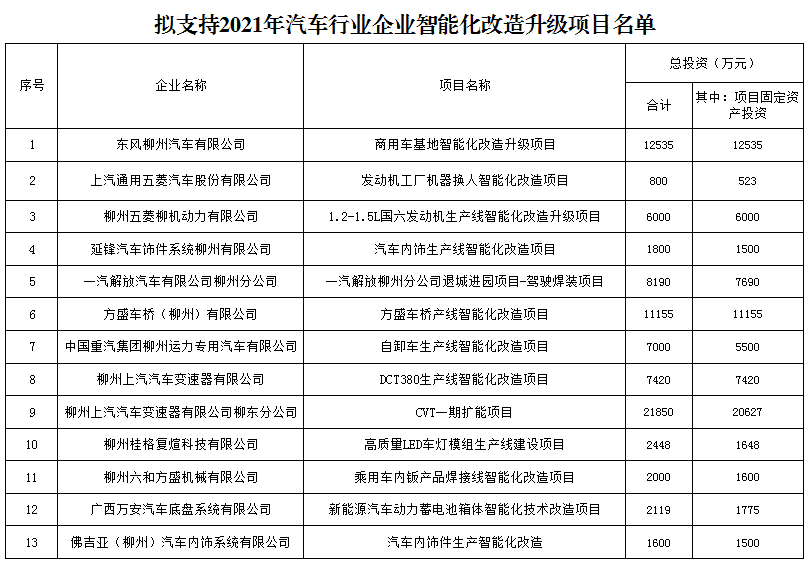 自治區(qū)工業(yè)和信息化廳擬支持2021年汽車行業(yè)企業(yè)智能化改造升級項目公示(2020.12.29)