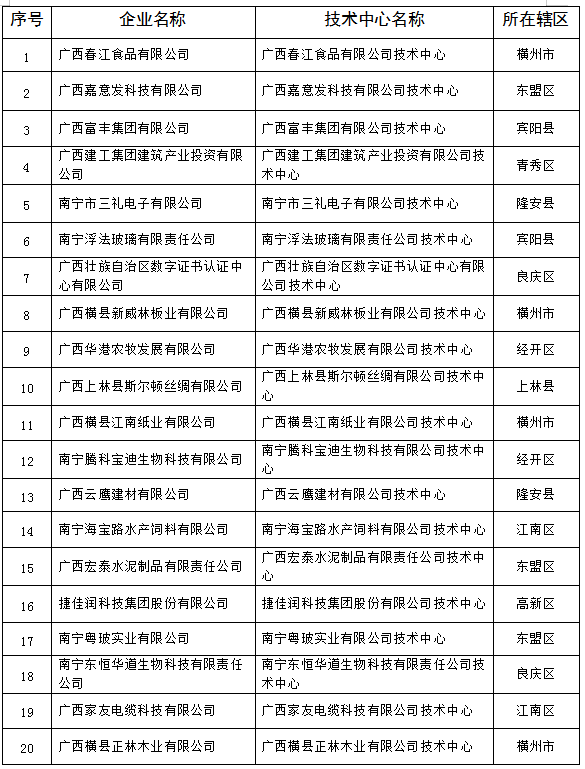 2022年南寧市認(rèn)定企業(yè)技術(shù)中心名單公示(2022-11-17)
